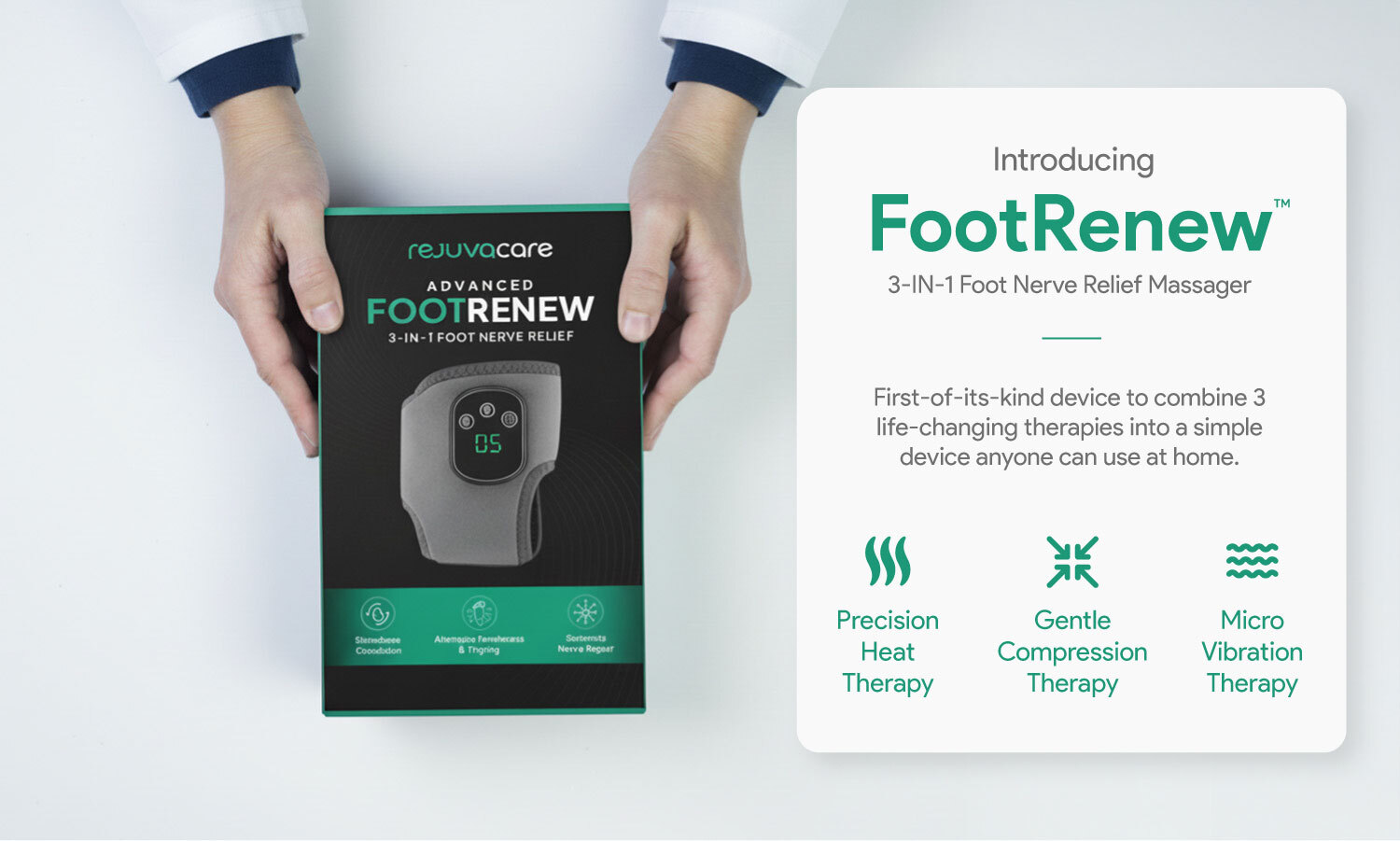 FootRenew is built around the “triple method” approach (warmth + massage + compression).